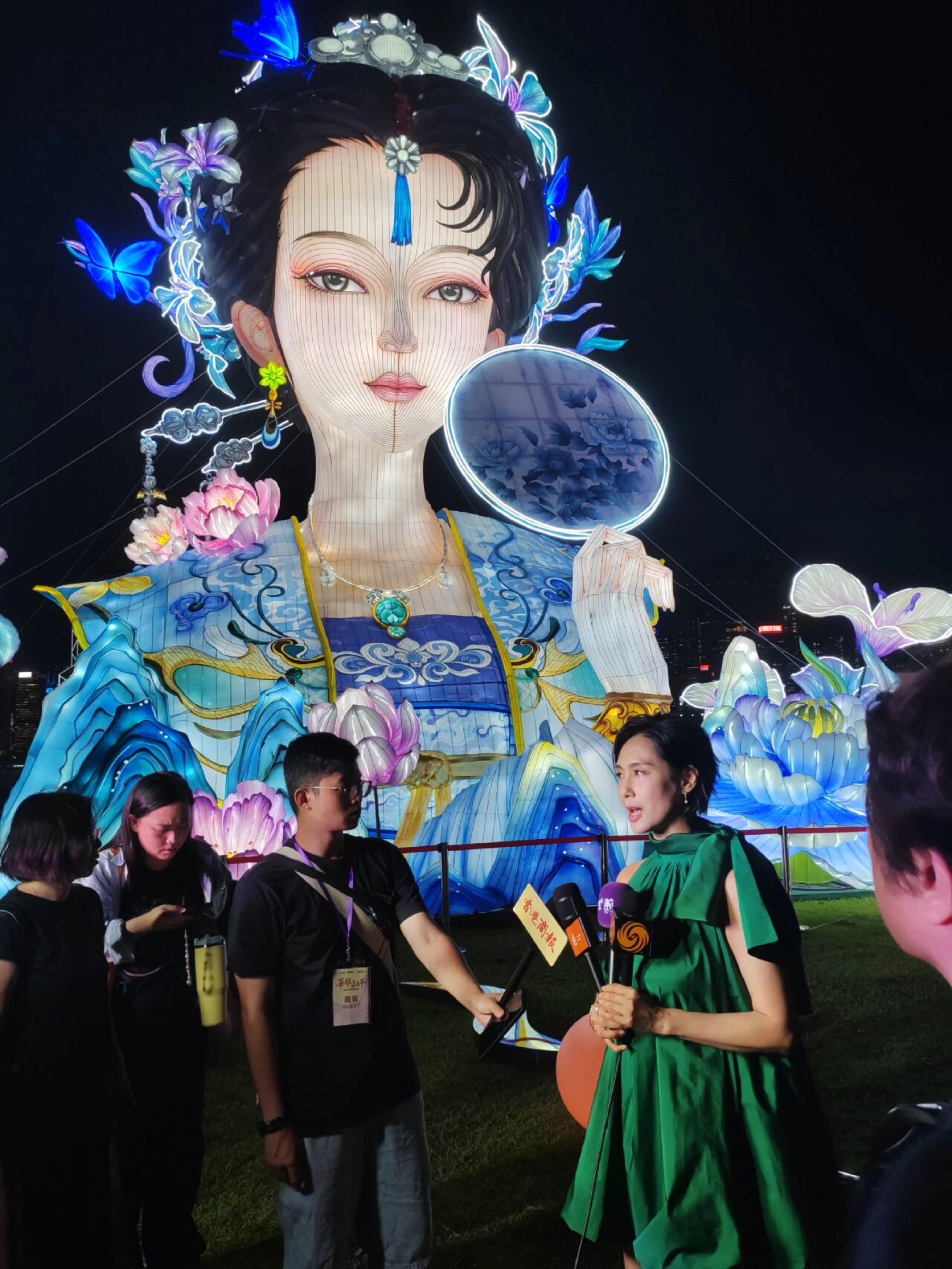 為助力“迎國慶?香港華服嘉年華”活動,自貢市文旅發(fā)展集團(tuán)旗下盛世絲路公司歷時半年、克服多重挑戰(zhàn),精心制作推出專屬燈組。9月29日活動開幕儀式上亮燈的“香江仙子”巨型花燈燈組,由四個大型花燈組成,主燈“紫霞仙子”高12.8米,是目前香港展出的最大單體人物花燈。該燈組運用非遺自貢彩燈技藝,結(jié)合華服等中國傳統(tǒng)文化元素與現(xiàn)代光影技術(shù),沿維港岸線陳列,形成獨具特色的燈景奇觀。